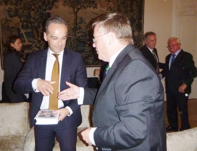 Der Autor im Gespräch mit dem damaligen Büroleiter von Hans-Dietrich Genscher und Zeitzeugen, Herrn Frank Elbe (unten) und dem Gastgeber, Herrn Botschafter Dr. Christoph Israng (rechts).